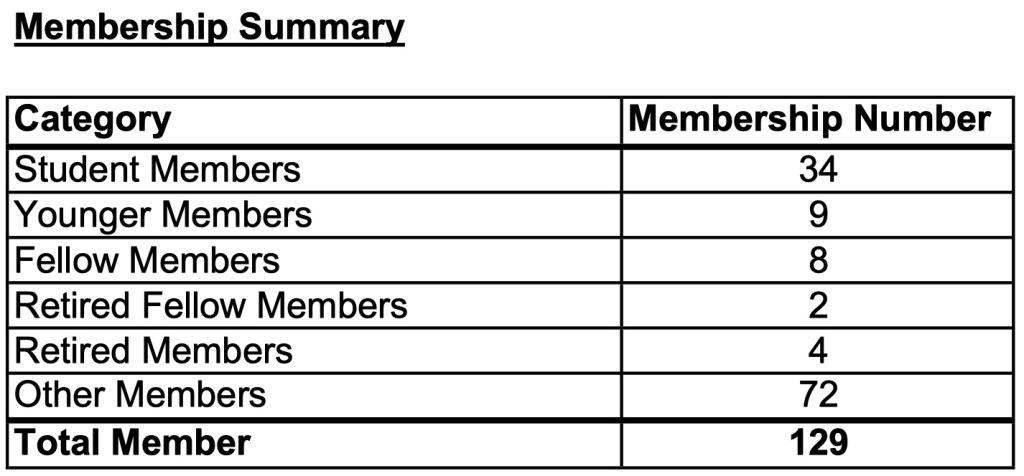 Beginning this year the Section has a new Membership Committee chaired by Faridur Rahman. The following update on current membership was provided at the Section Board Meeting in March: